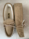 Traditional style moccasin made from top quality English suede and lined with luxurious English West Country sheepskin for ultimate warmth and comfort. Has a suede collar with adjustable lace and PVC sole. In Stock
